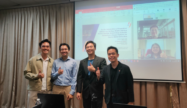 Bagas defended his Master dissertation "Facile Valorization of Hazardous Lithium-Ion Battery Waste: Betaine Hydrochloride-Based Deep Eutectic Solvent as a Green Platform for Heavy Metal Extraction" or "高危锂离子电池废料的简易增值利用:甜菜碱盐酸盐低共熔溶剂构建重金属提取绿色平台" under the supervision of Asst Prof Dr. Braedan Foo Chuan Yi and Prof. Dr Huang Nay Ming. His work has been published in SCI-indexed journal: