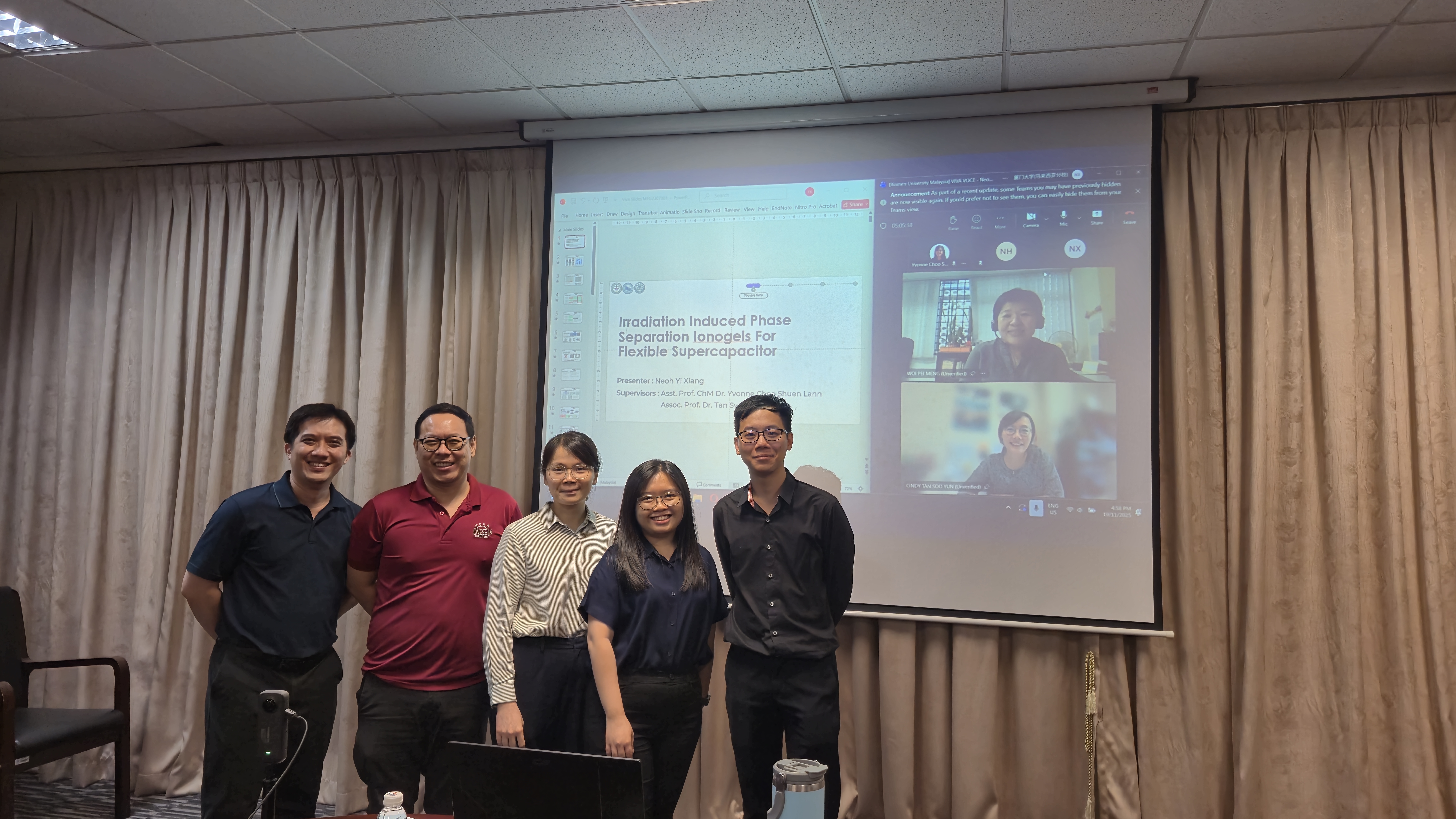 Neoh defended his Master dissertation "Irradiation Induced Phase Separation Ionogels for Flexible Supercapacitor" or "辐照诱导相分离离子凝胶用于柔性超级电容器" under the supervision of Asst Prof. Dr Yvonne Choo Shuen Lann & Assoc. Prof. Dr. Tan Swee Tiam. His work has been published in high impact factor SCI-indexed journal: